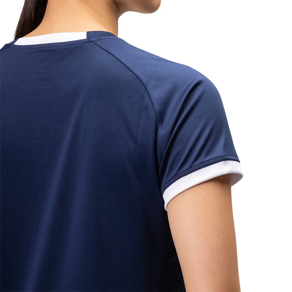 Ny snygg och väldigt prisvärd matchtröja i klassisk och ren design, tvåfärgad tröja med vita detaljer. Dammodell som är lite inskuren i sidan och med kortar ärm jämfört med mostarande modell i unisex. EVO FIT är en kroppsnära, ergonomisk passform framtagen för att följa kroppens rörelser under matchen. Tillverkad av 100 % polyester med strategiskt placerade meshpaneler under armarna för ökad ventilation. Det perforerade, lätta materialet är både snabbtorkande och andas effektivt, vilket ger maximal komfort även vid intensiv aktivitet.