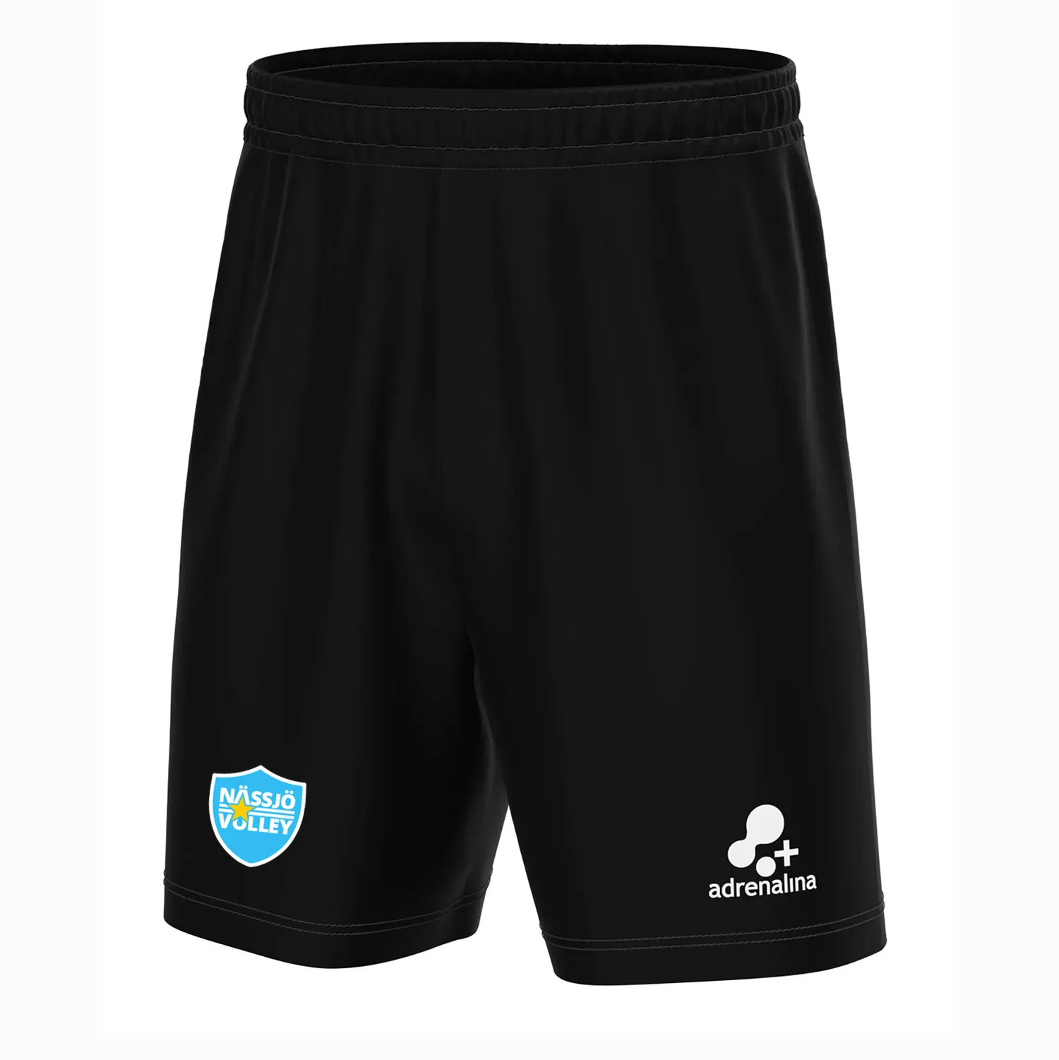 Liten +adrenalina logotype på vänster ben och på motsatt sida trycker vi Nässjö Volley loggan