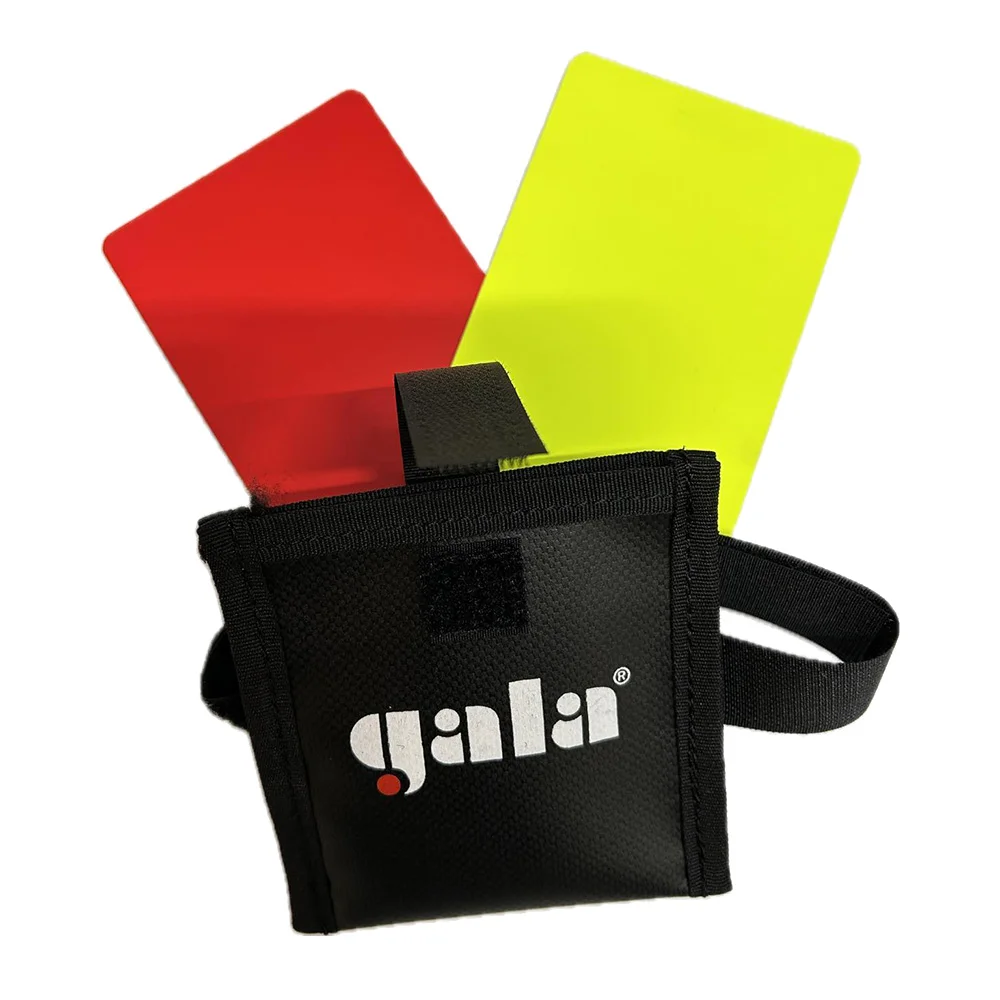 Bestraffningskort/domarkort för volleyboll från Tjeckiska Gala. Lagom storlek och med kardborrehållaren så är det lätt att ha korten på plast framför dig på stolpen.