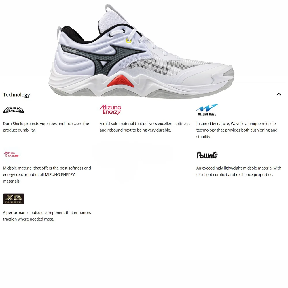 Denna volleybollsko är utvecklad för spelare som söker maximal dämpning och hög stabilitet, utan att kompromissa med låg vikt. Kombinationen av MIZUNO ENERZY och MIZUNO ENERZY CORE i framfoten ger en exceptionell känsla av dämpning och respons, samtidigt som skon upplevs lätt och snabb i spelet. Konstruktionen är noggrant utformad med fokus på stabilitet, särskilt genom förstärkningar kring mellanfoten – perfekt för intensiva sidledsrörelser på planen.